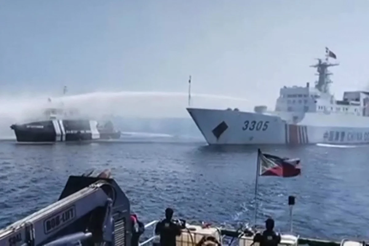 A Chinese navy vessel collided with one from its own coast guard while chasing a Philippine patrol boat in the South China Sea on Monday, Manila said, releasing dramatic video footage of the confrontation.